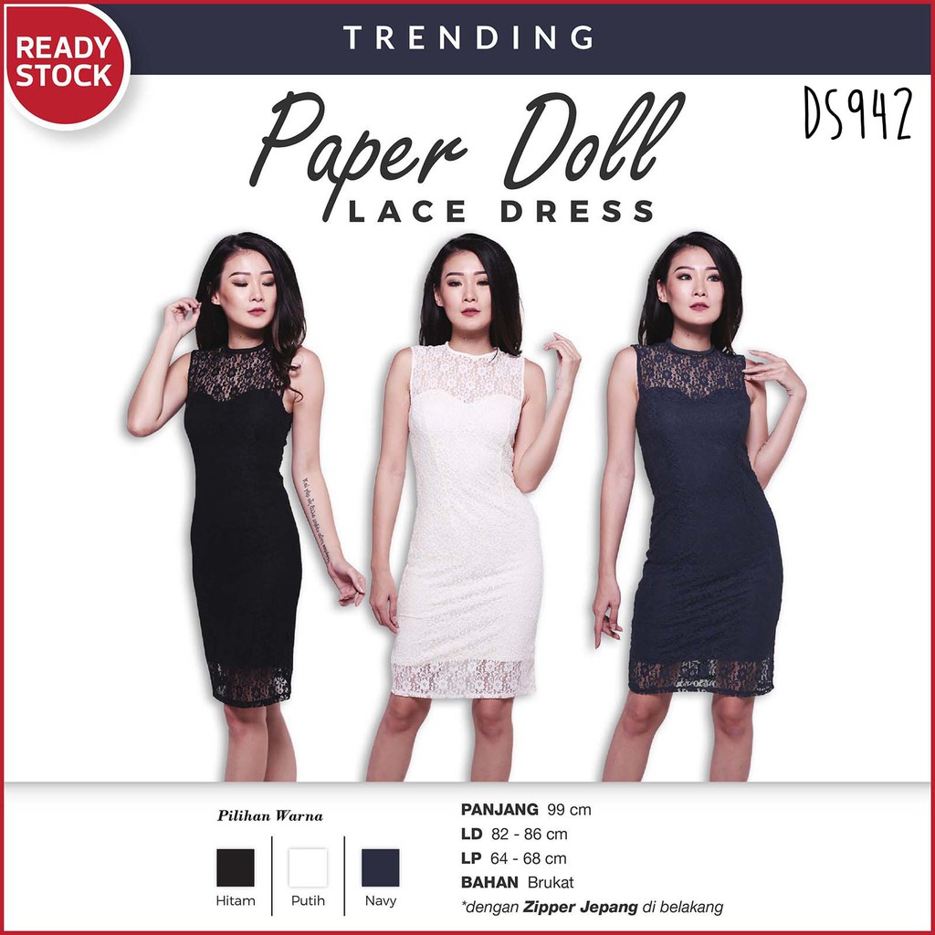 Sale Black Premium Paper Doll Lace Premium Dress Gaun Formal